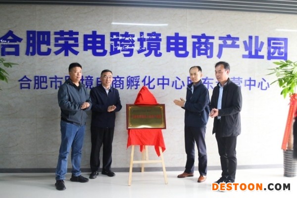 家电网-道:合肥市贸促会副会长陈玉雄、肥东县商务局副局长赵青、合肥市跨境电商孵化中心总经理谢方、荣电集团总裁夏俊生共同为合肥市荣电跨境电商产业园揭牌,正式宣告荣电跨境电商产业园成立。