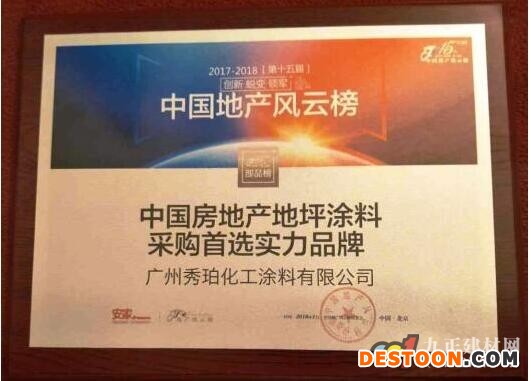 1月26日,以“创新蜕变领军”为主题的“2017-2018(第十五届)中国地产风云榜”在北京人民大会堂圆满落幕。2000余位地产专家与相关行业精英齐聚一堂、共襄盛举。盛典现场正式揭晓了各大具有新时代特色的榜单。广州秀珀化工涂料有限公司荣登本届风云榜部品类 “中国房地产地坪涂料采购**实力品牌”荣誉榜,成为**一家上榜的地坪产品品牌,彰显了秀珀在持续推进中国建筑材料技术创新、发展绿色建筑与环保建筑理念中的不懈努力获得了业界的一致肯定,也表明了地坪类产品已成为业界关注的重点发展品类。