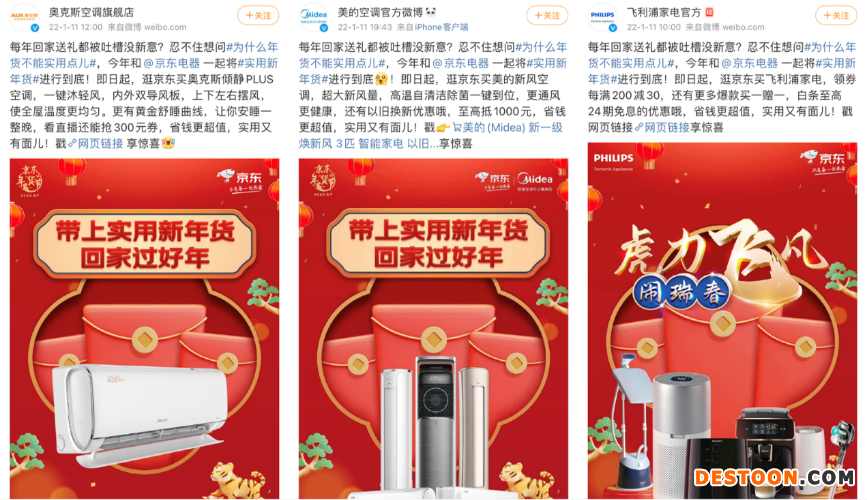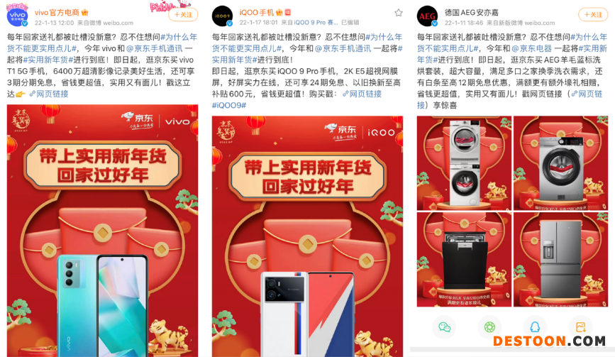 作为京东的多年老友,海信、奥克斯、vivo、美的、飞利浦、万和、宏基、惠普、西数、iQOO、云米、AEG、盈通、金士顿等电器品牌也纷纷与京东在微博玩起了互动,字里行间传递深厚情谊的同时,也让广大网友不仅感叹“原来过年送电器才是实用年货之选”!这次,电器品牌们带来了能和家人视频的电视、能循环净化空气的新风空调、能解放双手的洗碗机、能记录美好瞬间的拍照手机、能和家人一起娱乐的VR一体机不仅实用与科技兼备,还能代替子女在日常生活中带给父母更多的陪伴,正是过年送给父母的好选择。