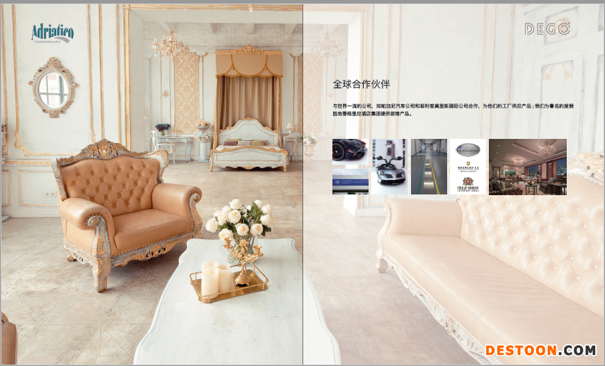 ADRIATICO不仅为著 名的度假胜地香格里拉酒店集团提供装饰产品,还与许多世界**的公司合作,比如帕加尼汽车公司和菲利普莫里斯国际公司,ADRIATICO为他们的工厂供应产品。