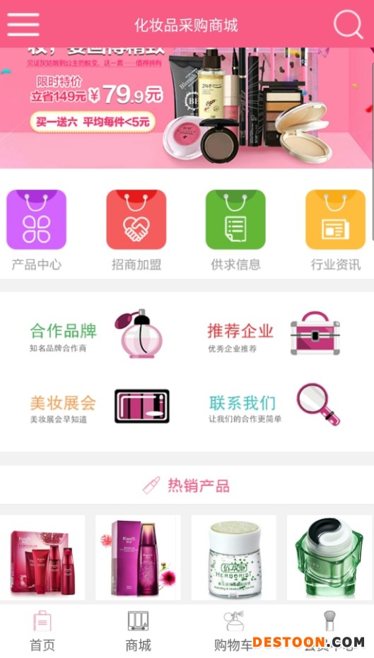 作为最专业的化妆品交易平台,化妆品采购商城APP以化妆品在线交易为基础,建立了化妆品领域B2B实用性信息平台,化妆品采购商城APP平台通用化妆品求购信息、招商加盟、新闻资讯和联系我们等功能于一体,打造化妆品一站式全产业链交易新模式,引领了化妆品交易的移动化趋势。