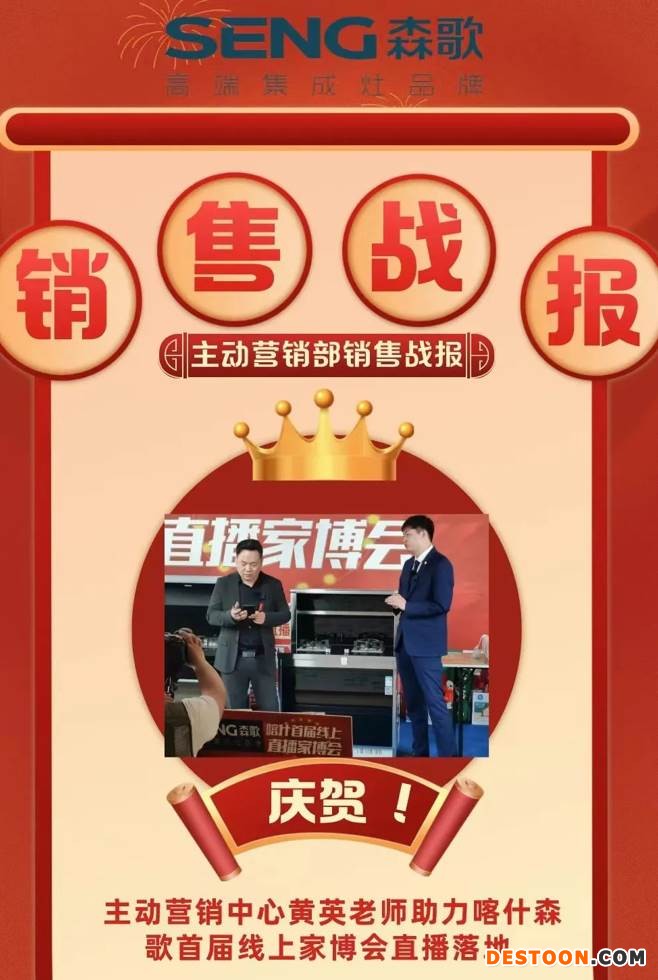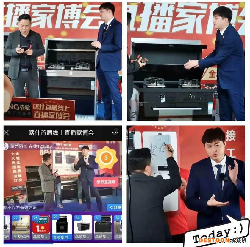 新疆喀什线日,森歌主动营销中心黄颖老师助阵首届新疆喀什线上家博会,通过直播落地的形式进行蓄客签单,连续两天的直播,签单量和首款量取得了远超预期的胜利,更是极大地提升了森歌在当地市场的影响力。