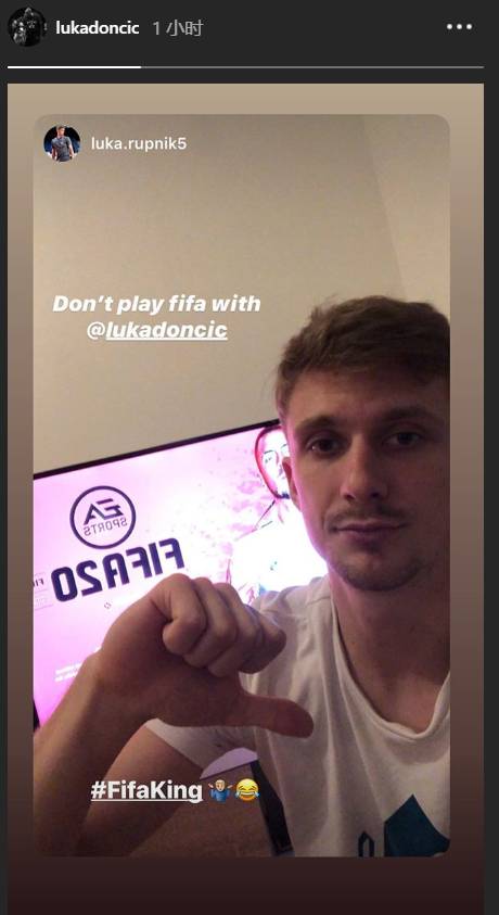 卢卡-鲁普尼克写道:“不要和东契奇玩FIFA。”东契奇配文道:“我是FIFA之王,#笑哭。”