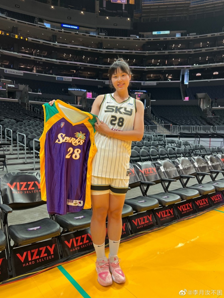 在今天芝加哥天空大胜洛杉矶火花的比赛中,李月汝出战10分钟,5投2中拿到4分5篮板。