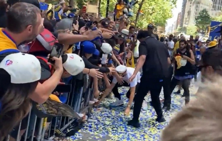 冠军游行:克莱和球迷忘情庆祝 差点把自己的冠军戒指给扔了