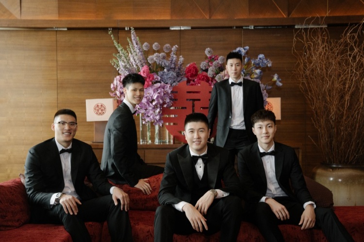 广东男篮主帅杜锋,总经理朱芳雨,球员易建联、胡明轩、赵锦洋和徐杰等人均出席了王薪凯的婚礼。