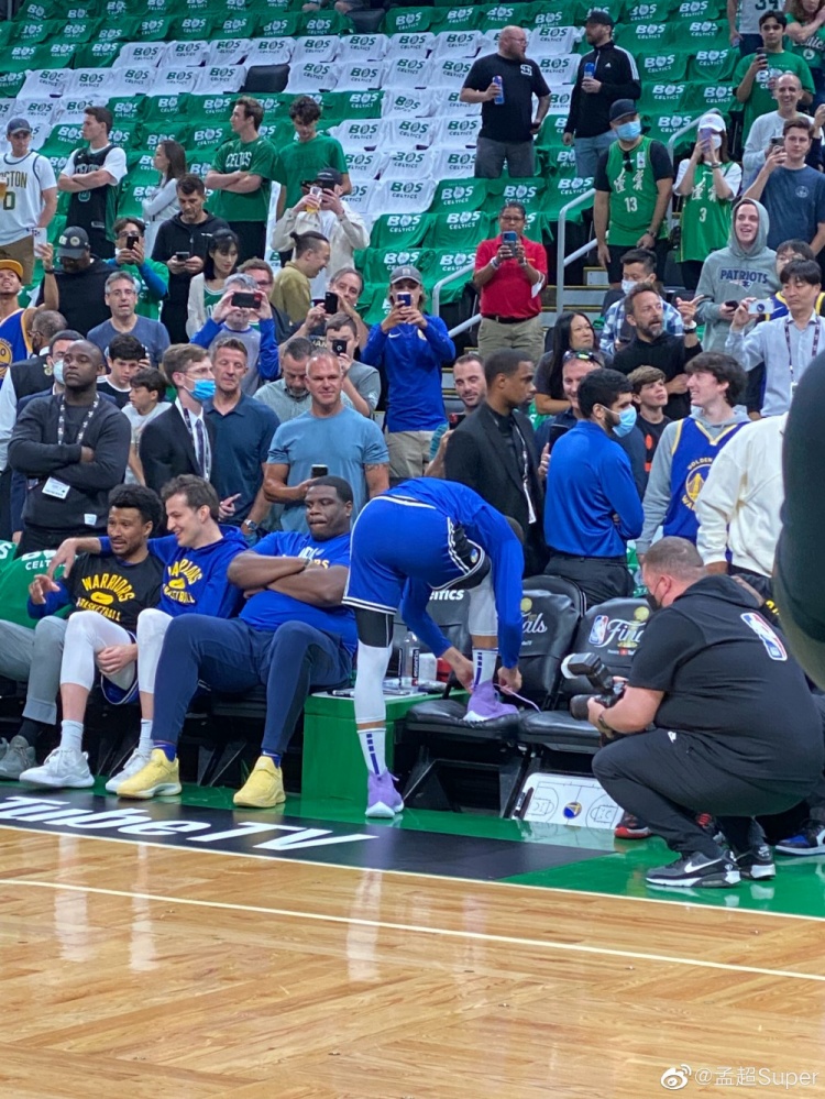 赛前,记者孟超发博晒出一张现场照,并写道:“库里今天穿紫色。”