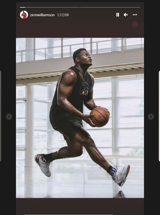 6月22日讯 鹈鹕球星锡安-威廉森今天更新社交媒体,晒出一张训练照。