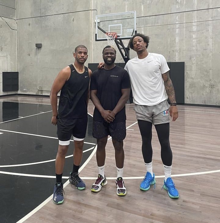 “芝加哥公牛队前锋德玛尔-德罗赞在与菲尼克斯太阳队控卫克里斯-保罗一起训练。”Daniel Greenberg这样写道。
