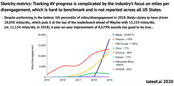 不过最近,我们看到了这项数据的新变化。百度的自动驾驶已经达到了人工每次干涉之间 18,050 英里,超过了 Waymo(谷歌)的 13,219 英里。对于不断加强 AI 投入的百度来说,最近的投入已经开始得到回报。