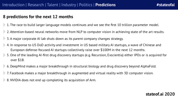 在最后一部分,剑桥 2020 年度 AI 全景报告给出了关于未来 12 个月的 8 项趋势预测。
