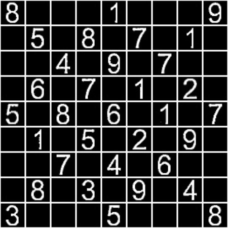 现在,我们有了最终的数独预处理图像,下一个任务是提取图像中的每一位数字,并将其存储在一个矩阵中,然后通过某种算法计算出数独的解。