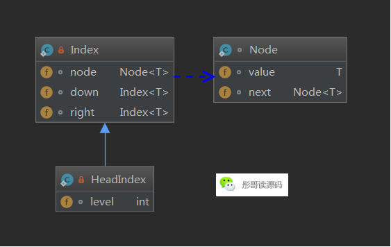 跳表节点,在通用实现中跳表节点分成了三大类:头索引节点、索引节点、普通节点,让我们仔细分析一下。
