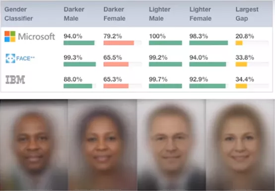 尽管“深色皮肤男性”辨识度高,深色与浅色皮肤的辨识还是存在很大差距,特别是“深色皮肤女性”。这些成果属于前沿科技公司的,也许不是那些警察用的。
