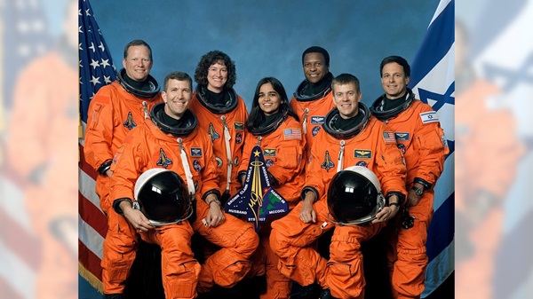 STS-107任务的全体成员。2003年发射前,他们搭乘哥伦比亚号航天飞机的任务已经推迟了18次。但是,在返回地球时,哥伦比亚号解体,机上人员无一幸存。