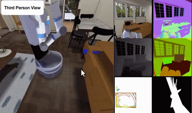 那么,对一个研究人员而言,想解决什么任务或想研究什么课题就决定了用什么模拟环境,所谓工欲善其事,必先利其器。对 iGibson 而言,我们想研究的是:基于视觉信号,机器人如何在大型真实场景(如一整间公寓)中解决需要与环境互动的任务。