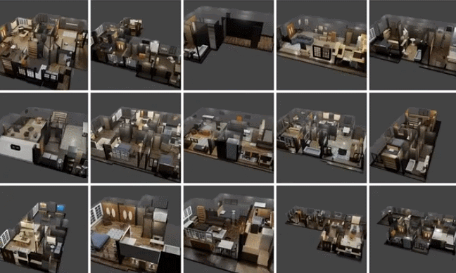 15 个充分可交互、视觉上逼真、依据真实房屋构建的场景。其中所有物体可真实交互,包含了材料与动力学信息;