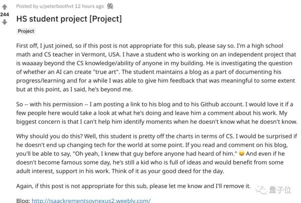 鎸夌収浠栫涓?绡囩珛椤瑰崥鏂囦腑鐨勮鏄庯紝浠栧湪鍋氱殑鏄娇鐢ˋI瀵圭湡瀹炰笘鐣岀殑杩愬姩鐗╀綋锛岃繘琛岃壓鏈寲澶勭悊鍐嶇幇锛岀敱姝よ璁篈I鐨勫垱浣滆兘鍚﹁绉颁负鑹烘湳銆?
