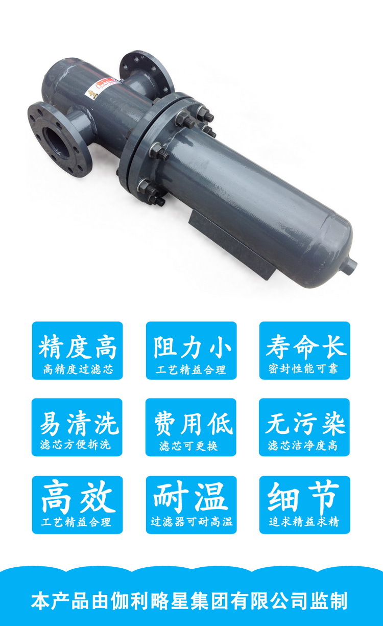 T级精密过滤器通用范围:一般螺旋式空压机前置过滤材质:多层玻璃纤维滤芯滤杂质:1MICRON滤油含量:0.5PPM最大压力:16KG/CM