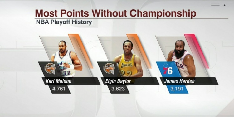 新闻中心 无冕之王!历史0冠球员季后赛总得分前三:马龙、贝勒、哈登