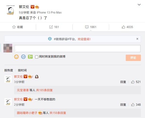 赛后,辽宁球星郭艾伦更新了微博,他写道:“真是忍了个( )了 ”
