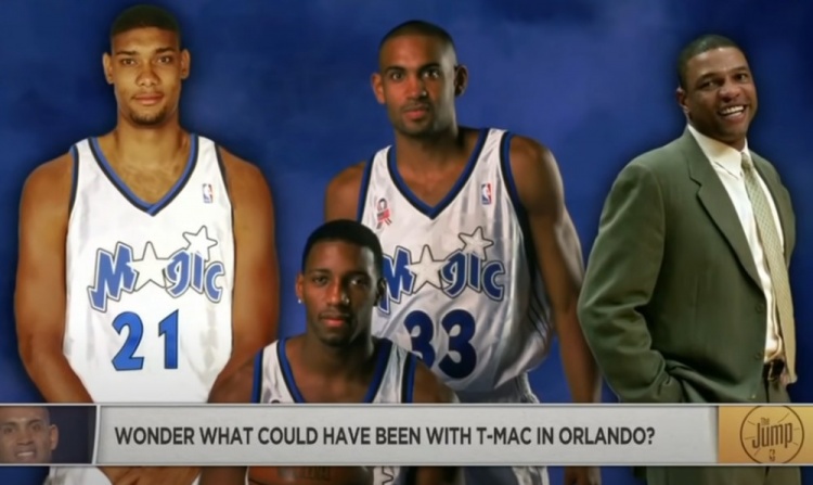 谈到当年可能与邓肯搭档,麦迪说道:“都是些道听途说。我没有足够的信息,只是有些报道。我从未和邓肯或者老里(注:1999-2000赛季魔术队主教练是里弗斯。)谈论过这个情况。当时的流言说邓肯没有来魔术因为他老婆想随队坐飞机看一些客场比赛。老里对此并不赞同,所以这对邓肯的签约来说会成为阻碍。反正他们是这么告诉我的,我没有从他们中的任何一人得到任何消息。我无法确认此事的真实性,但如果真是这个原因,老里啊,拜托,兄弟,你在搞什么?”