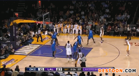 2009年11月23日湖人对阵雷霆科比面对新秀哈登的极限端线投篮