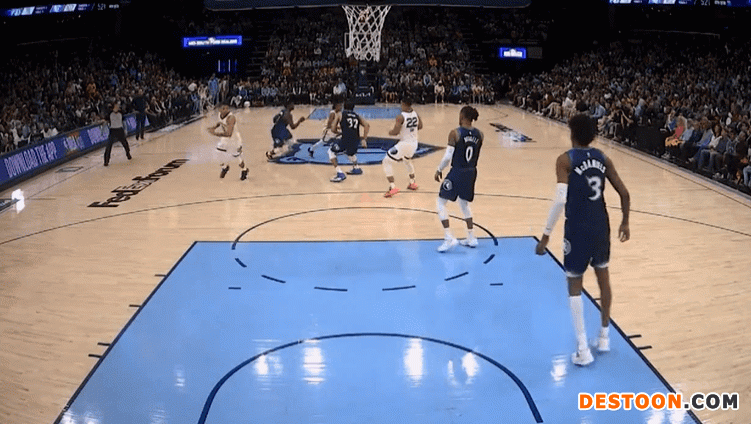 4月17日讯 今日NBA季后赛首轮G1,灰熊主场迎战森林狼。 末节比赛,灰熊球星莫兰特再现高光时刻,他在弧顶持球突破,杀入内线后起飞双手隔扣拉塞尔,十分劲爆。