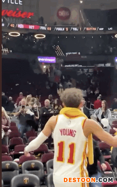赛后,特雷-杨来到场边与父母紧紧相拥。