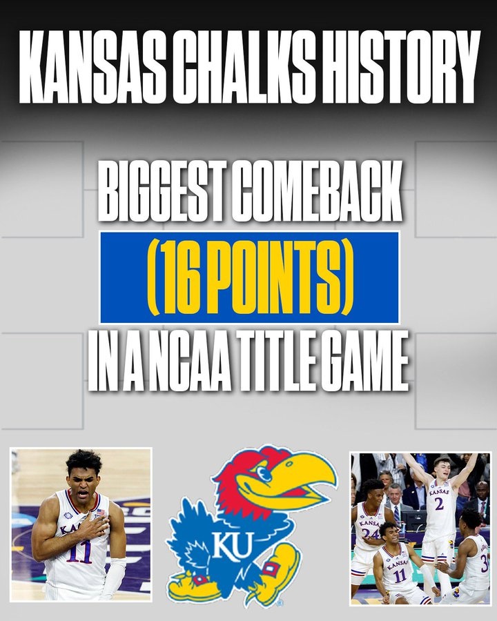 4月5日讯 NCAA疯三冠军赛,堪萨斯大学在落后16分的情况下逆转北卡夺得队史第四冠。