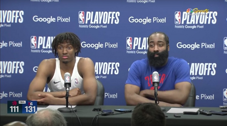 新闻中心 哈登谈14次助攻:就是尽可能传给马克西 他实在是跑得太快了