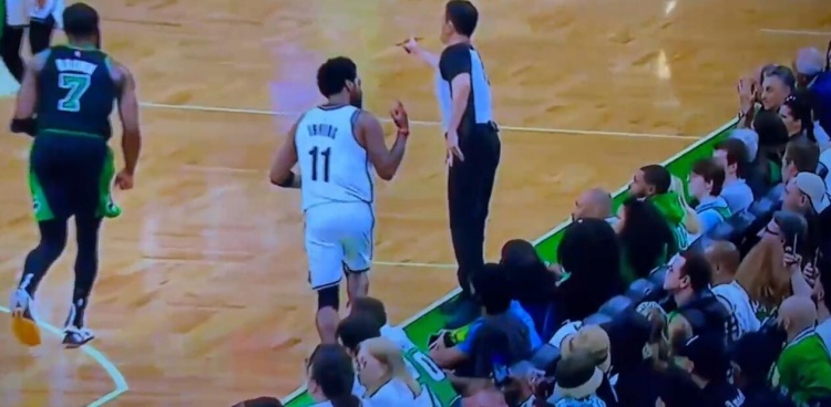 欧文在命中投篮后朝着凯尔特人场边的观众竖起了中指。