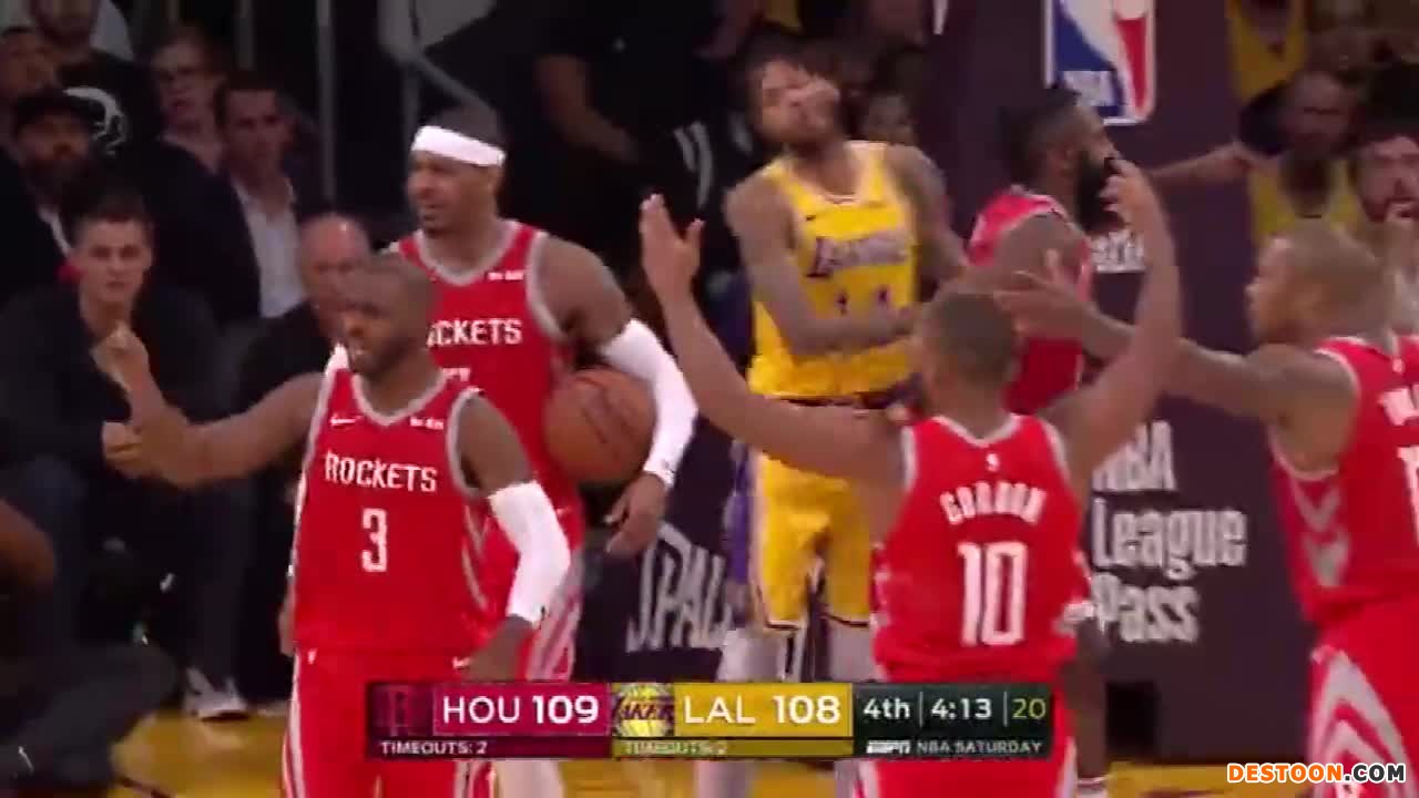 4月17日讯 2018年10月21日火箭客场击败湖人,在末节剩4分13秒时,两队发生冲突,