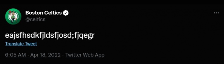 在塔图姆投进绝杀的那一瞬间,凯尔特人官推发表了一串字母的推文,以表达兴奋之情。