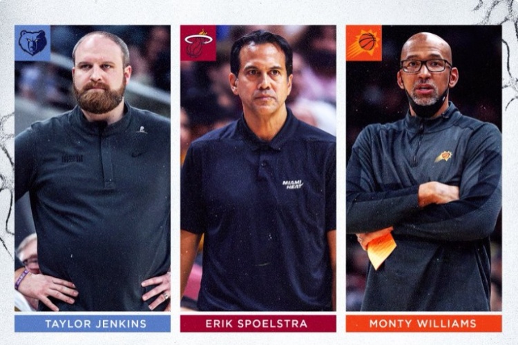 4月18日讯 NBA官方公布本赛季最佳教练的最终三人候选:太阳主帅蒙蒂-威廉姆斯、灰熊主帅詹金斯和热火主帅斯波。