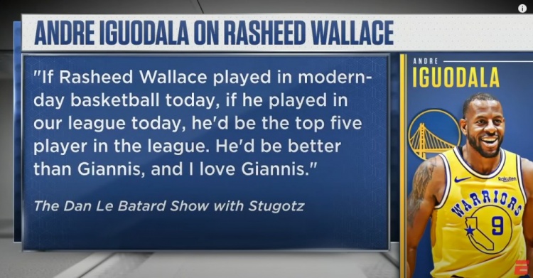 7月14日讯 伊戈达拉此前在播客节目中表示,如果拉希德-华莱士在如今的NBA打球,会是联盟前五的球员,强于字母哥。