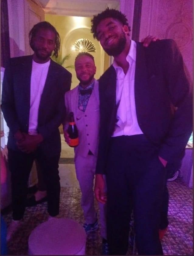 随后,乔治婚礼现场流出了更多的照片,其中莱昂纳德也在其中,他与唐斯进行了合影。