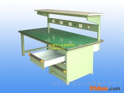 福永防静电工作台西乡防静电工作台沙井防静电工作台r深圳市万富元工业设备有限公司 【质量第一】r防静电工作台主体采用金属材料,台面采用防静电防火板或防静电台垫,良好的接地措施. 及优异的防静电性能。 r整体设计布局原理,高度可适当调节,附件可任意搭配,可根据不同的工作环境,灵活地调整防静电工作台的组合,预留电缆配置盒并具有若干组多功能电源插座,并配置照明系统,使用方便(可按客户要求订做)。工作原理: 1、防静电工作台台面一般由防静电三聚氰胺高压装饰层压板(俗称防静电防火板)为表面材料与木质材料复合制成。木质材料一般为刨花板,通过嵌入导电体如钢柱,再通过接地线接地,这样桌面静电荷通过接电线顺利地泄放到大地。2、也有一些工作台是不锈钢的,桌面需要铺一块防静电桌垫,桌垫通过接点线连入大地,达到泻放静电的效果。3、其实原理很简单,防静电工作台就是能满足用户的普通工作台功能的基础上,增加了防静电功能,也就是如何将静电泻放掉静电工作台特点。r一、整体防静电性r(1):防静电工作台本身磨擦不产生静电r(2):如果有外来静电时,工作台具有消除静电的功能,普通的防静电台垫只能横向导泄静电。r(3):防静电工作台首创纵向导泄静电避免了静电通过工作区,从根本上杜绝了潜在静电对产品造成的损坏。r(4):防静电桌面部分及防静电涂料(金属件)均为进口原材料。其性能达到永久性防静电。防静电效果为十年以上。r(5):高极格栅灯使用寿命为五万小时。如果有意向的写留言时把名字那写成手机号码,谢谢r公司经营理念:产品质量好,耐用性强,价格底,真正做到物美价廉。欢迎来电洽谈!!r本公司对所提供的产品保修3年,在3年期内,我们有责任对我公司的产品进行免费保修,在广东省范围内,如果本公司产品需要维修或更换零部件,在接到对方通知后,5个工作日内公司一定安排技术人员到达现场,直至把本公司产品修好为止。但人为因素及自然灾害除外(不包括消耗产品)。另每年本公司会派专业技术人员不定期上门进行免费检查及保养!!r专业生产;货架|模具架|文件柜|仓储笼|工作台系列|龙岗模具架&龙门架&宝安工作台|深圳模具架|鞋柜|更衣柜|手推车|工具柜|刀具车|零件柜|代理各种品牌叉车|深圳零件柜|深圳货架|深圳工作台|深圳仓储笼|深圳工具柜|深圳鞋柜|深圳龙门架|深圳文件柜|东莞货架&东莞模具架&惠州工作台&深圳工作台&东莞工作台&龙岗货架&宝安工具柜&宝安货架&宝安模具架&货架公司品质十年保证!!r