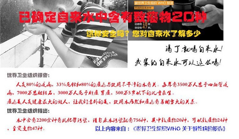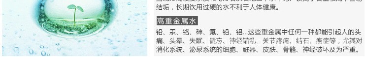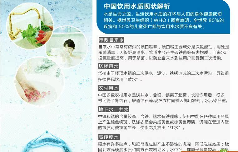 r r r 为什么说龙头净水器是最适合厨房使用的净水器? r r r 龙头净水宝是专门为厨房使用而设计的净水器,它出水流量大,每分钟可达6L, 接一大锅水不要一分钟;一个小小的滤芯总产水量可达5000-10000L,这是市场上其它净水器所无法比拟的;而滤芯清洗和更换非常简单,堵塞后将底盖拧下,用水砂纸或百洁布清刷洗净即可;龙头净水器使用的是陶瓷滤芯,没有二次污染,而滤芯内放置的纳米金属簇滤料则有很好的抑菌效果。 r r | r |||||||||||||||||||||||||||||||||||||||||||||||||||||||||||