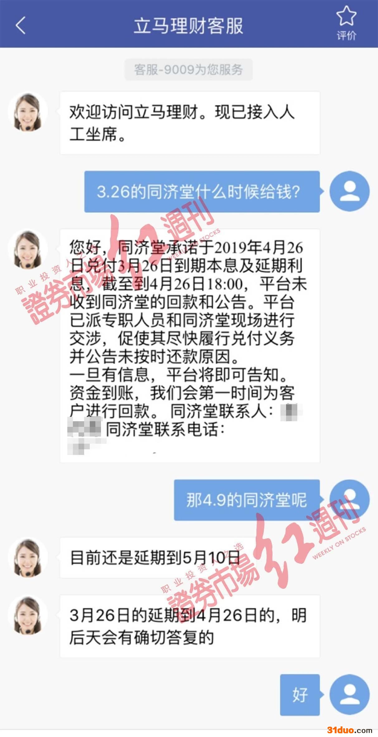 但《红周刊》记者了解到,立马理财销售的嘉康盈等系列产品投向了三胞集团、同济堂等爆雷企业,导致出现了兑付违约,引发了很多投资人投诉和不满,至今仍有余波。