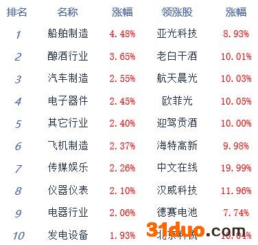 A股市场板块及个股涨跌幅排行
