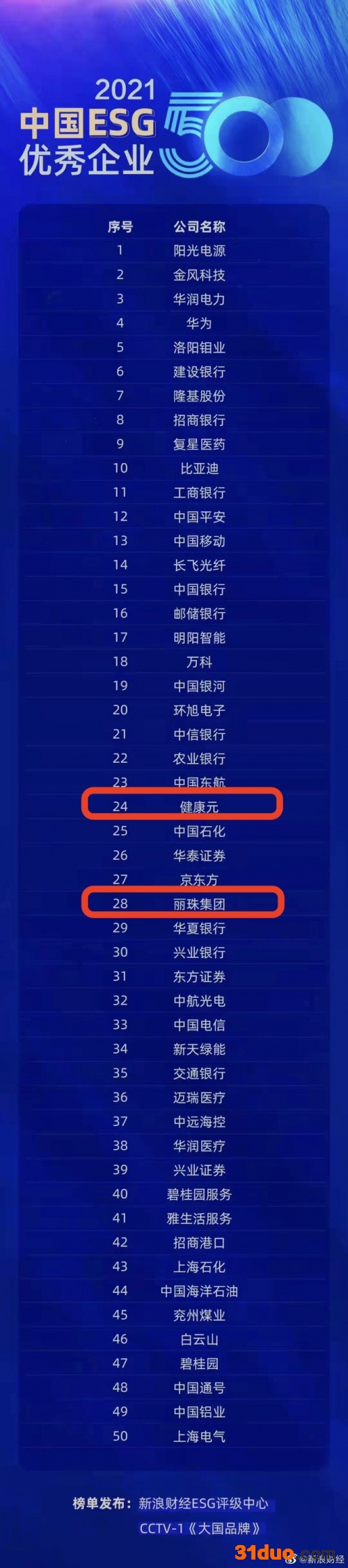 附图为2021年“中国ESG优秀企业500强”榜单前50名企业排行榜。