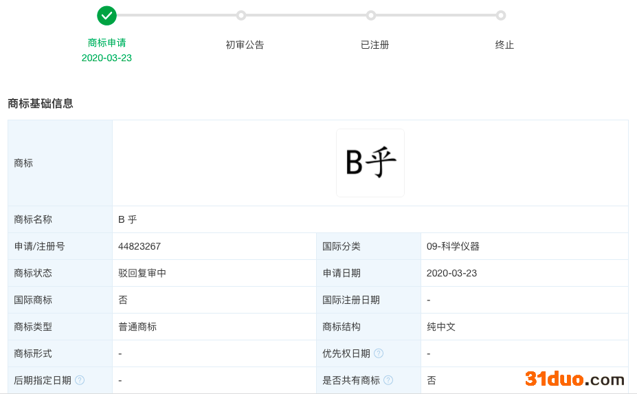 知乎关联公司注册B乎商标被驳回 意指“B面的知乎”
