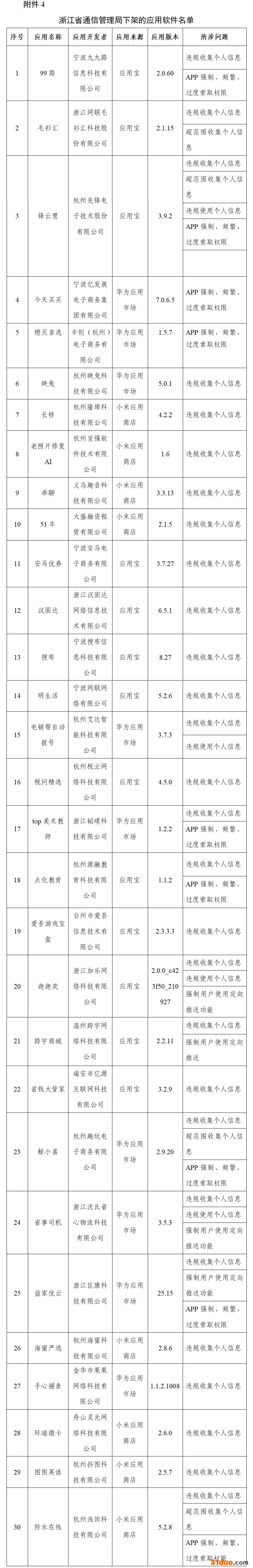 中国网科技12月9日讯 据工信微报消息,今年以来,工信部持续推进APP侵害用户权益专项整治行动,加大常态化检查力度,先后三次组织对用户反映强烈的重点问题开展“回头看”。11月3日,工信部针对APP超范围、高频次索取权限,非服务场景所必需收集用户个人信息,欺骗误导用户下载等违规行为进行了检查,并对未按要求完成整改的APP进行了公开通报。截至目前,尚有5款APP未按工信部要求完成整改(详见附件1)。各通信管理局按照工信部统筹部署,积极开展APP技术检测,截至目前尚有101款APP仍未完成整改(详见附件2-8)。