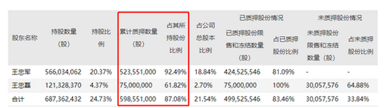 华谊兄弟于12月9日披露的最新质押公告显示,实际控制人王忠军、王忠磊累计质押股份数量占其所持公司股份比例达到87.08%。