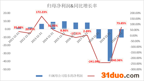 从归母净利润来看,可能会更只管一些,2018年公司业绩转亏后,已经连续三年归母净利润为负,三年亏损了62亿元,约合当前市值的2/3。
