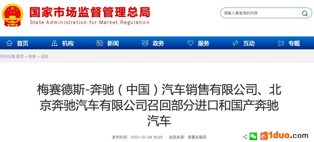 中华网财经12月8日讯,日前,梅赛德斯-奔驰(中国)汽车销售有限公司和北京奔驰汽车有限公司根据《缺陷汽车产品召回管理条例》和《缺陷汽车产品召回管理条例实施办法》的要求,向国家市场监督管理总局备案了召回计划,自即日起召回共计313辆汽车。