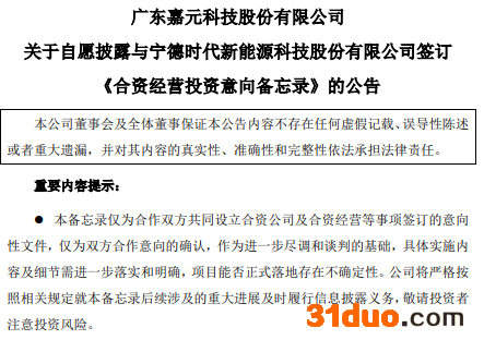 中华网财经12月8日讯,嘉元科技公告,与宁德时代签订合资经营投资意向备忘录,拟共同设立合资公司首期注册资本5亿元,后续可根据需要分期增资至20亿元,将规划建设年产10万吨高性能铜箔项目。