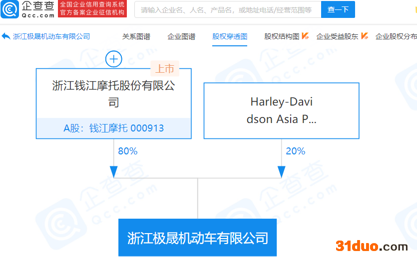 该公司由钱江摩托(000913)、Harley-Davidson Asia Pacific Pte. Ltd共同持股。