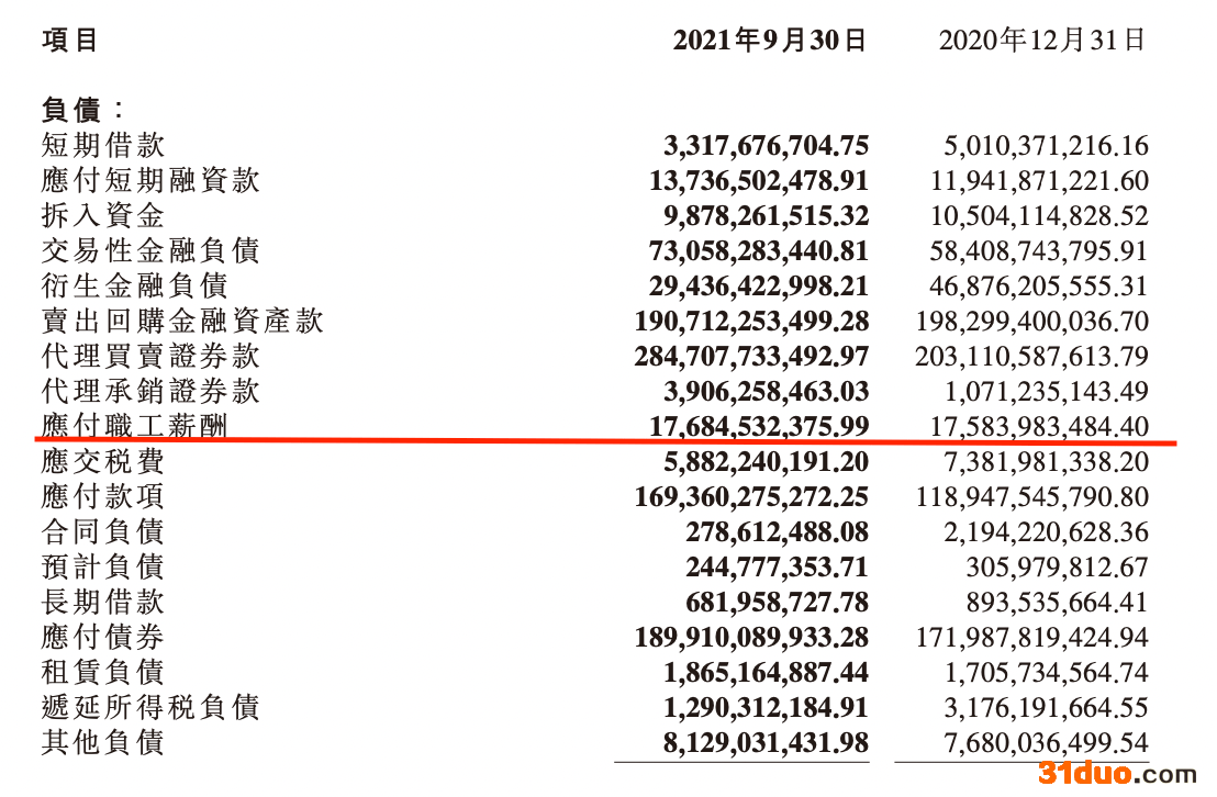 券商行业薪酬水平向来受人瞩目,中信证券三季报显示,今年前9个月,中信证券应付员工薪酬176.8亿元,按照此前披露的19012人的员工总数计算,前三季度中信证券人均薪酬达到93万元,人均月薪超过9万。